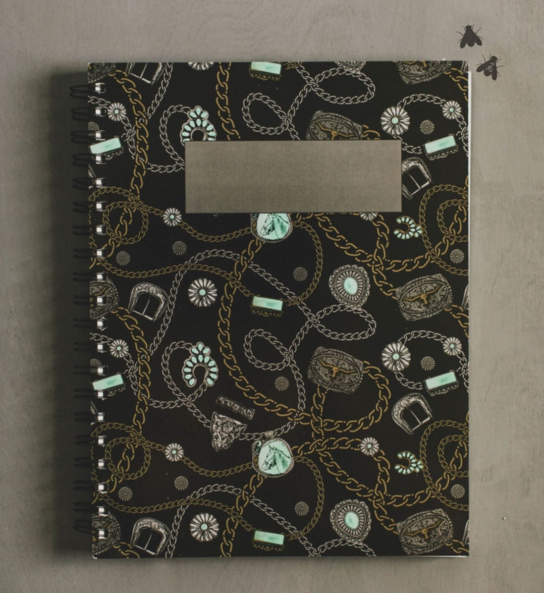 we LOVE some good stationery pieces. add a little 2fly vibes and BOOOM you have a NOTEWORTHY western notebook. sturdy notebooks. premium paper. black coil binding. Cowboy Lux Pattern. 100 PAGES 10.5" X 7.5" X 0.5"