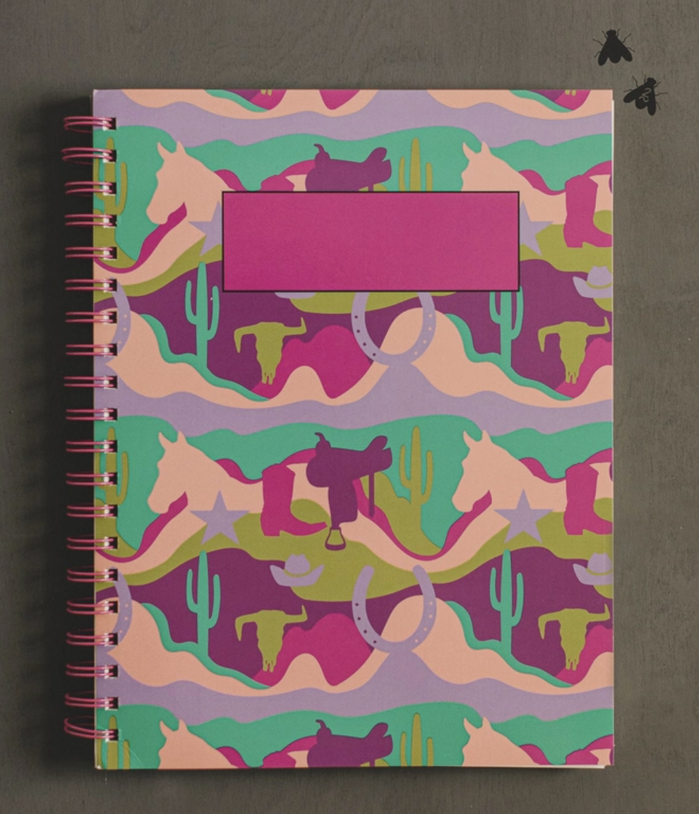 pink coil binding. western wave pattern.